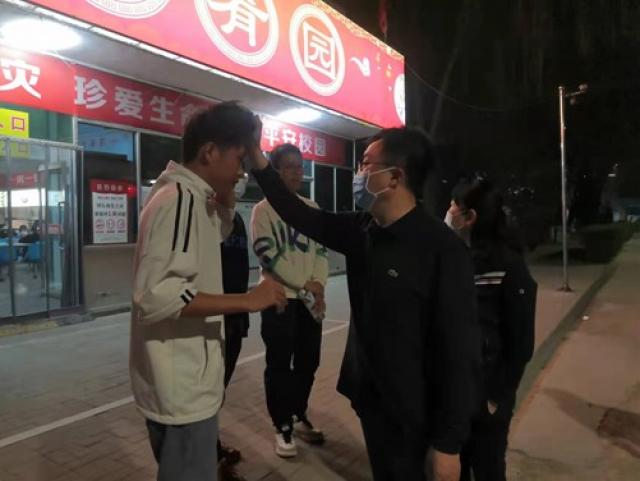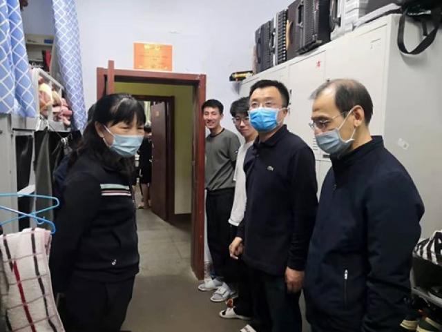4月8日晚,校党委副书记寇福明、组织统战部长孙宏吉走访我院如月苑2号学生公寓,看望学生并检查疫情防控的落实情况,我院党委副书记武全、党委副书记常福英以及驻校辅导员陪同。
