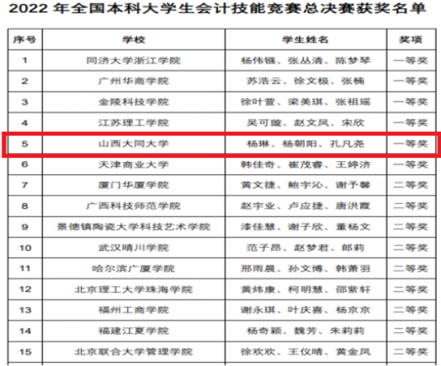 为提升高等院校财会专业教学质量及会计技能教学水平,由中国商业会计学会主办、江苏理工学院承办、厦门九九网智科技有限公司技术支持的“2022 年全国本科大学生会计技能竞赛”于 2022 年 10 月 29 日及 2022 年 12 月 3 日分别举行线上区域赛和总决赛。本次区域赛共有来自29个省(自治区直辖市)的234所本科院校的1571名学生报名参赛。按照比赛规程,比赛设置了北、东、西三个区域赛,总决赛由区域赛选拔出的50所学校参加。永利集团304参赛队伍以北区第一名进入总决赛,同来自西南财经大学、成都理工大学、广东财经大学、山西财经大学、新疆财经大学等选手同台竞赛,经过激烈角逐我院21级会计专升本班孔凡尧、杨琳、杨朝阳(指导老师吴海燕、李婷)取得了全国一等奖的好成绩。