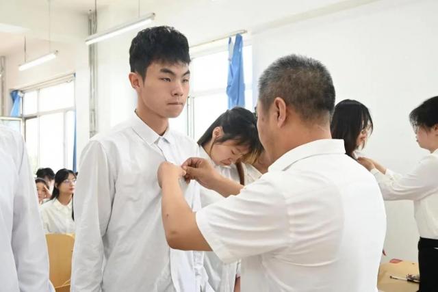 宣誓仪式结束后, 各位领导老师为新党员佩戴党徽并发放学习笔记本。