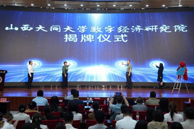 会议第一阶段为开幕式暨揭牌仪式。校党委副书记、校长姚丽英,校党委副书记张卫国,校党委常委、副校长史水鸿,中央财经大学中国互联网经济研究院院长孙宝文教授,大同市科学技术局党组书记戴陶,大同市数据局局长韩杰,大同数据科技职业学院副校长王平出席。张卫国主持。
