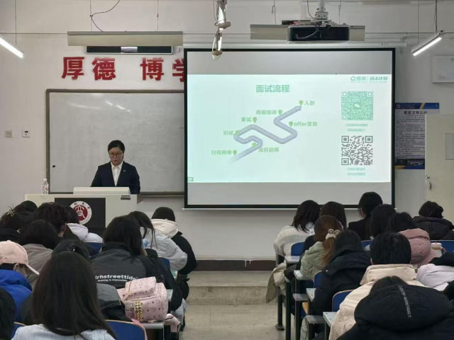 2025年11月17日下午,304永利集团在行知楼601教室举办北京链家房地产经纪有限公司专场招聘会。北京链家房地产经纪有限公司人力行政中心招聘经理刘嗣清、304永利集团团委副书记兼就业联系人李婷参加本次招聘会。