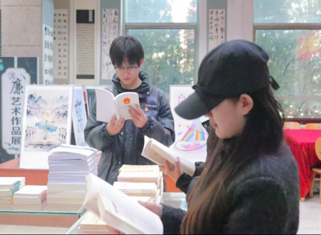 在活动中,党员师生跟随讲解员的引导沉浸式学习“习语领航”“纪法知识”“警示教育”“时代楷模”“廉洁文化作品展”和“廉政读书角”六大板块。师生党员重温习近平总书记关于全面从严治党、党风廉政建设和反腐败斗争的重要论述、习近平总书记考察山西重要讲话重要指示精神,夯实廉洁修身的思想根基;通过书画、海报等廉洁主题作品感悟廉洁文化的时代价值;通过对纪检监察条例汇编、廉洁主题经典读物进行学习交流,深化廉学认知,为清廉商院建设凝聚行动合力;师生党员还紧扣晋商“诚信守义、崇廉尚俭”精神内核,深入探讨以晋商廉洁基因涵养师生党性修养、筑牢拒腐防变思想防线的路径。